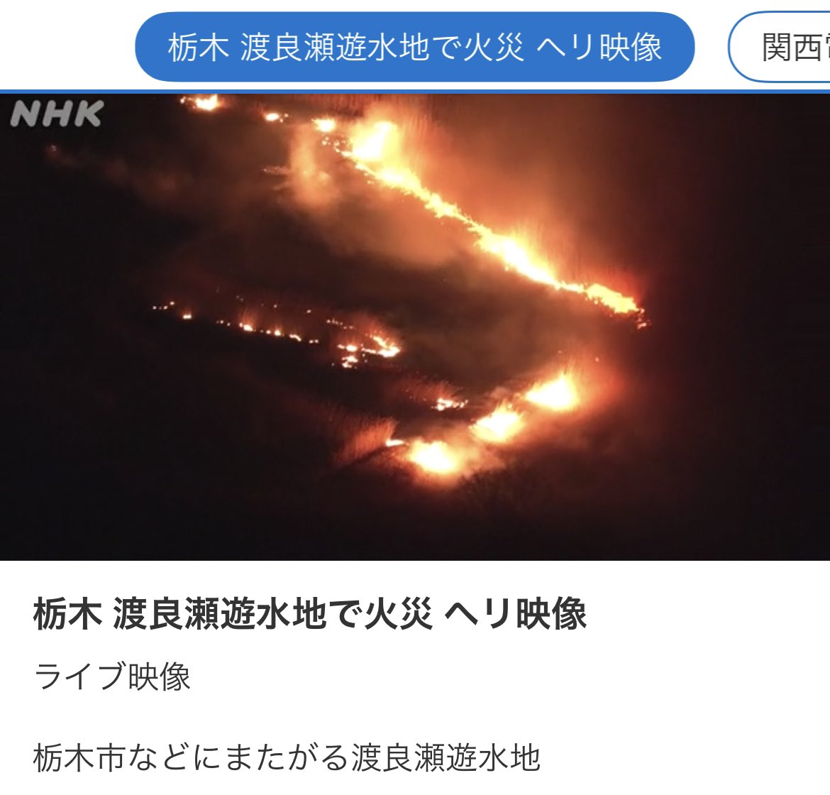 栃木市、野木町、板倉町、古河市に囲まれた渡良瀬遊水地が火事で凄い。