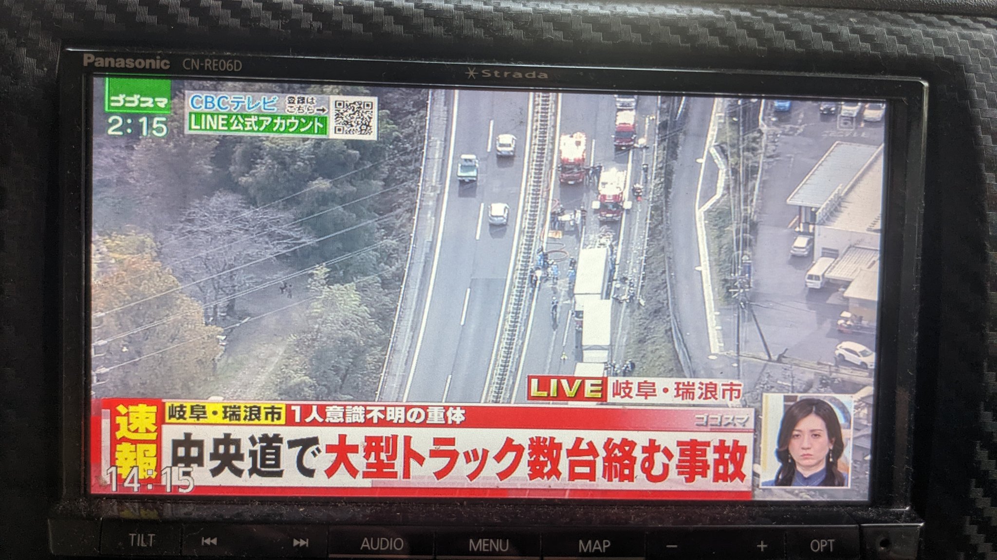 上り瑞浪インター超えたあたりでトラック5台玉突きしてます。