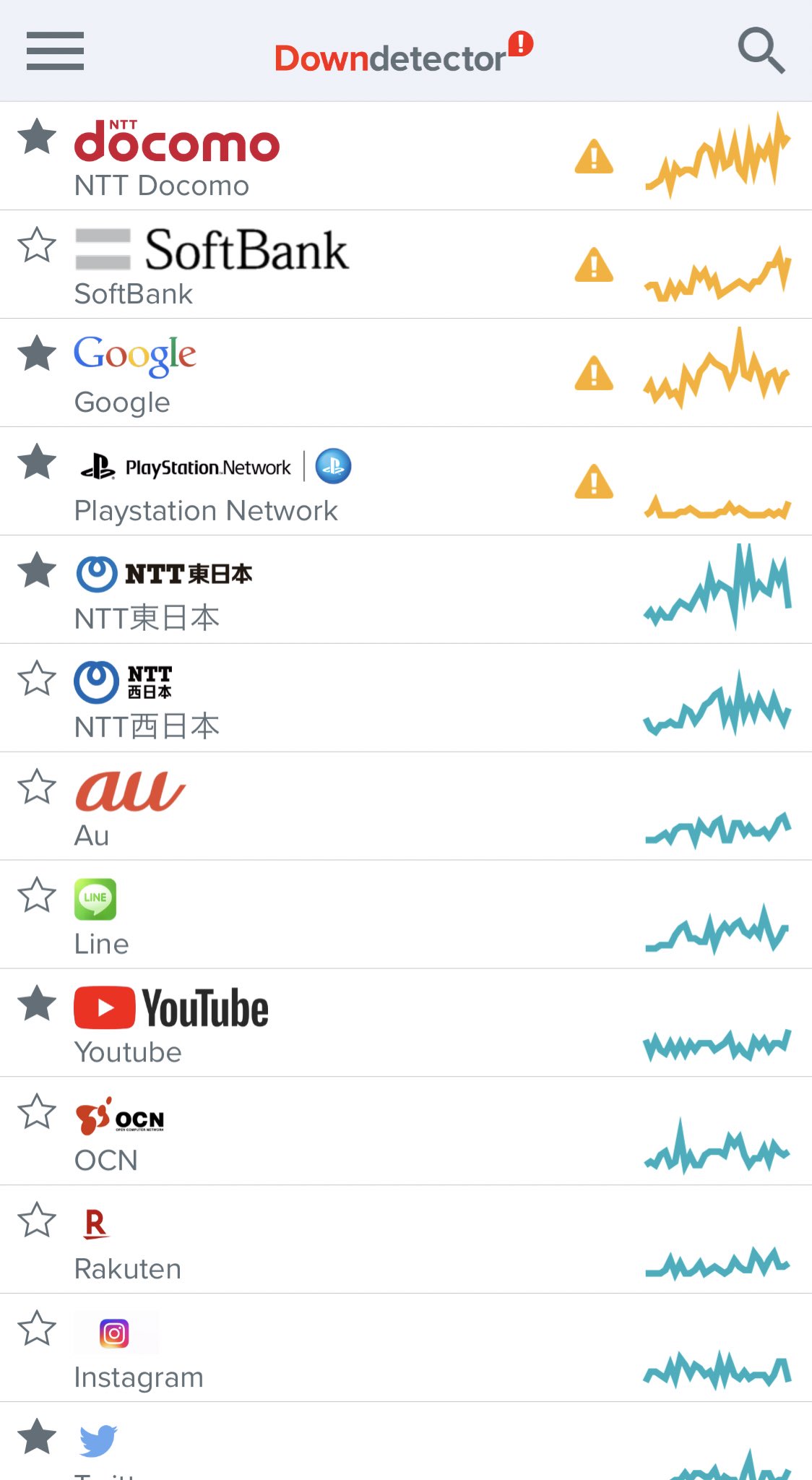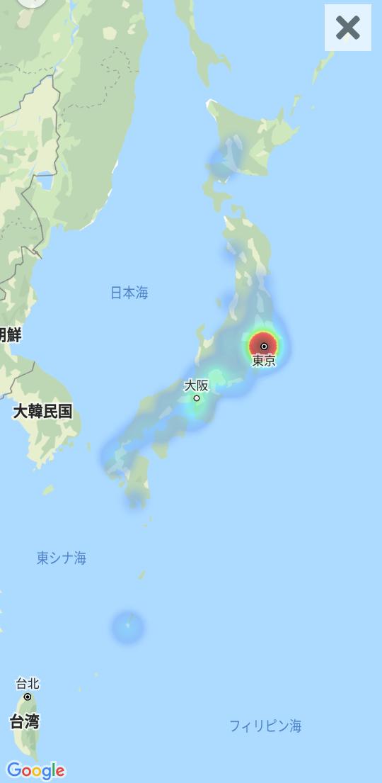 12時過ぎから報告が相次ぎ、12時40分頃に障害エリアが拡大