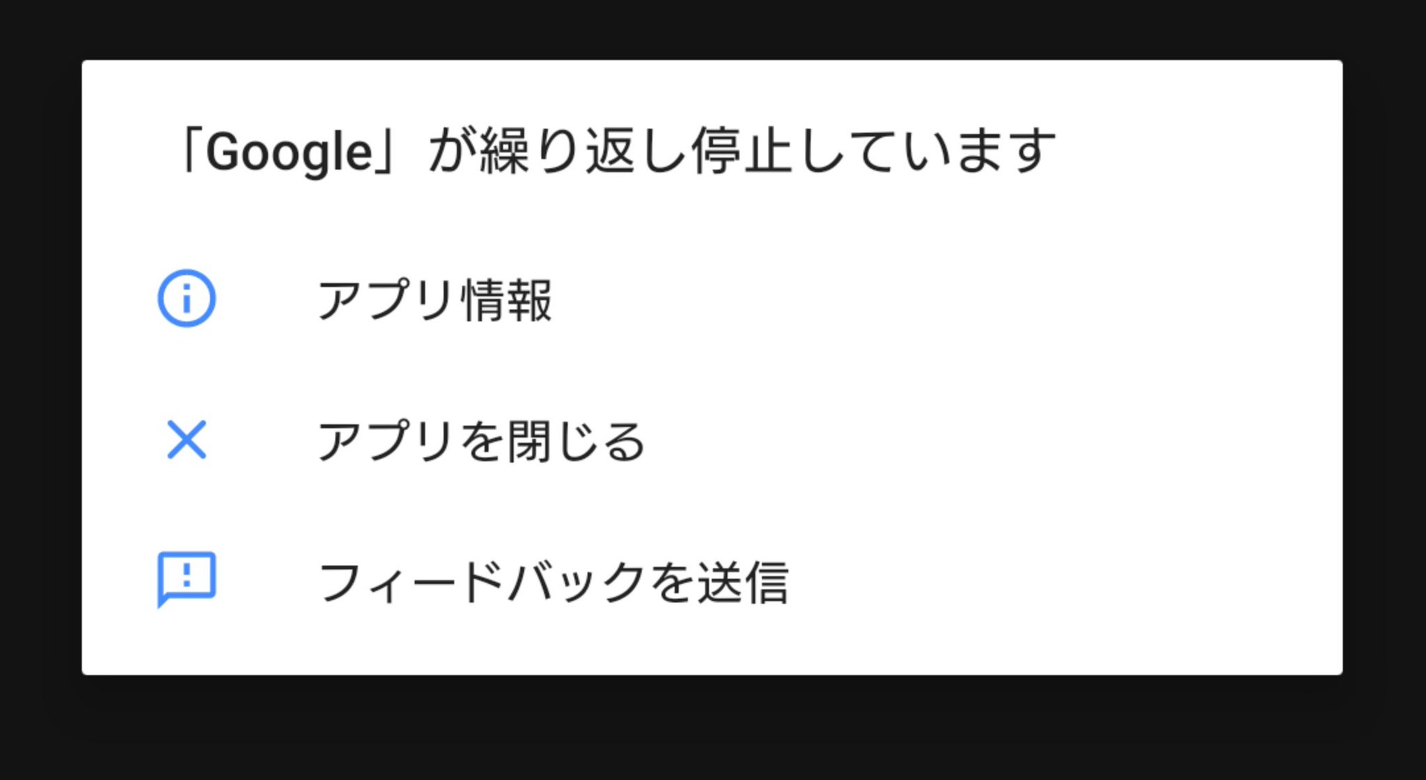 6月22日13時頃から「Googleが繰り返し停止しています」エラー