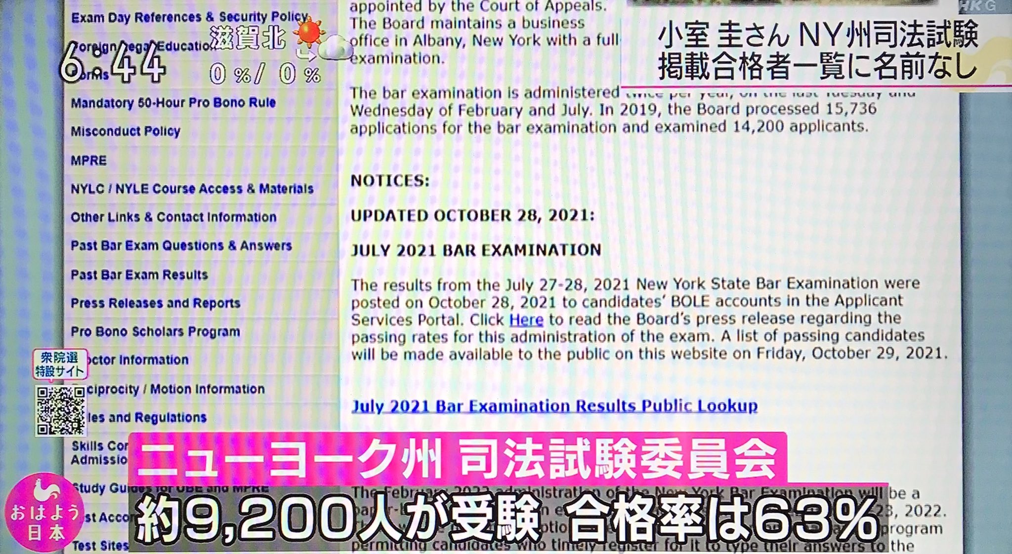 小室圭さんは、2021年7月に、アメリカ・ニューヨーク州の司法試験を受験していたが、