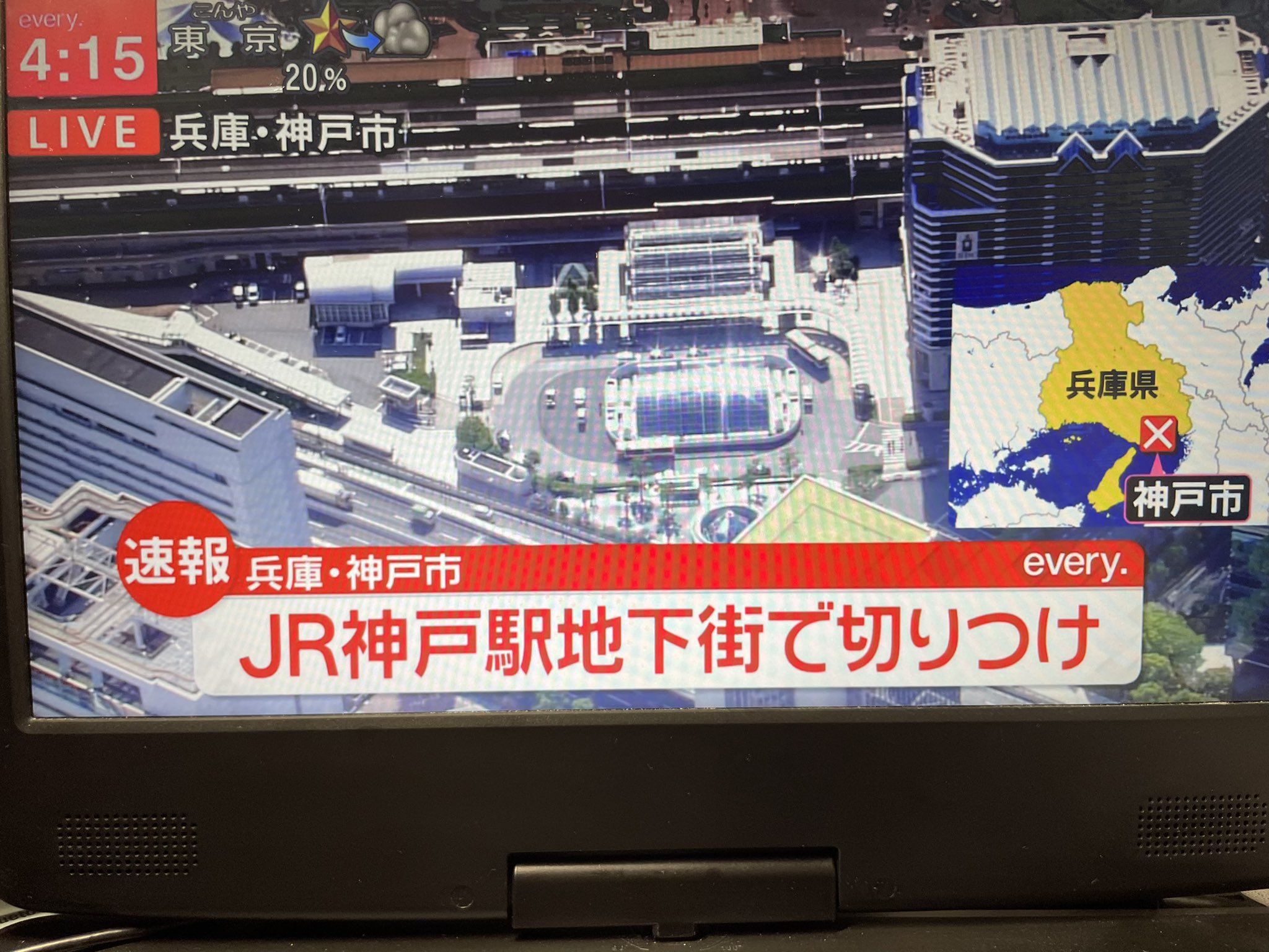 さっき神戸駅で警察が立ち入り禁止の黄色いテープを張り巡らせてて捜査してた。カッターナイフで通行人が切りつけられたらしい神戸駅周辺の皆さん気をつけて。自分もだけど。