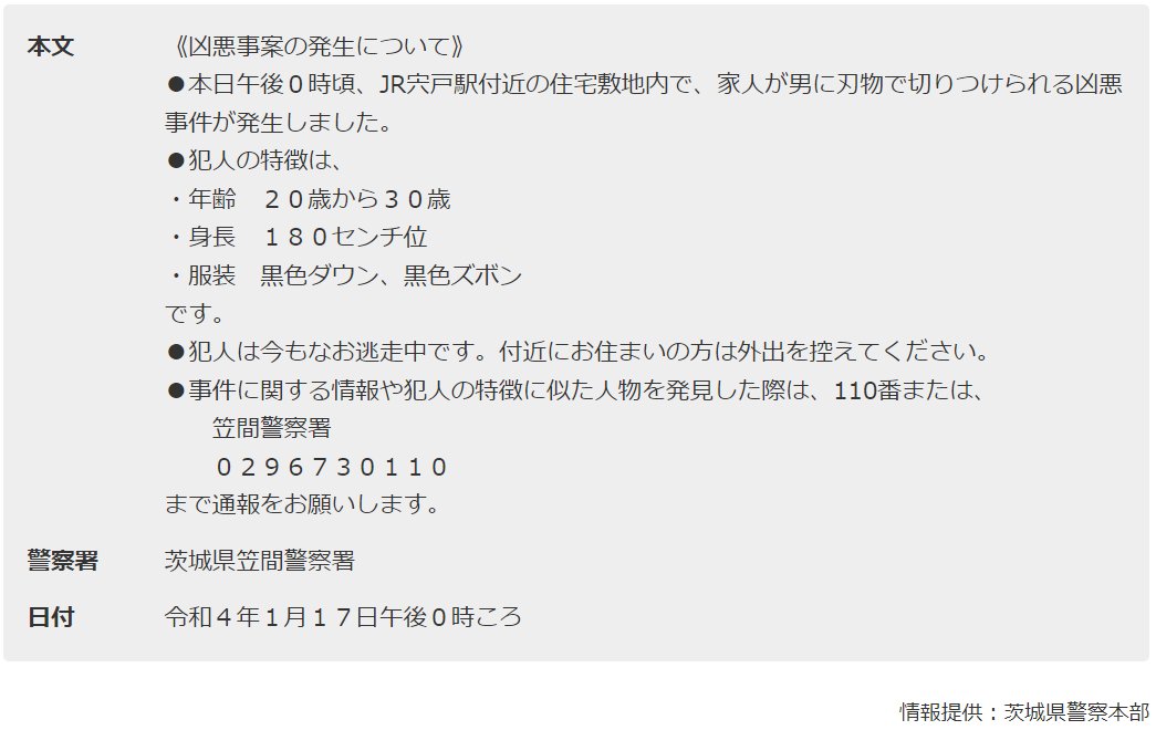 【注意喚起】茨城県笠間市平町 JR宍戸駅の近くの住宅で殺人事件「女性が刃物男に首のあたりを切り付けられ死亡、犯人逃走中」水戸新映でヤクザ抗争による発砲事件も発生で水戸市内がパトカーだらけ1月17日