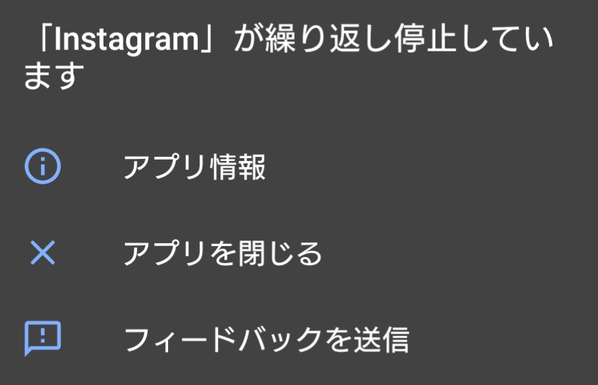 インスタがループで強制終了、キャッシュ削除で復旧する可能性もある