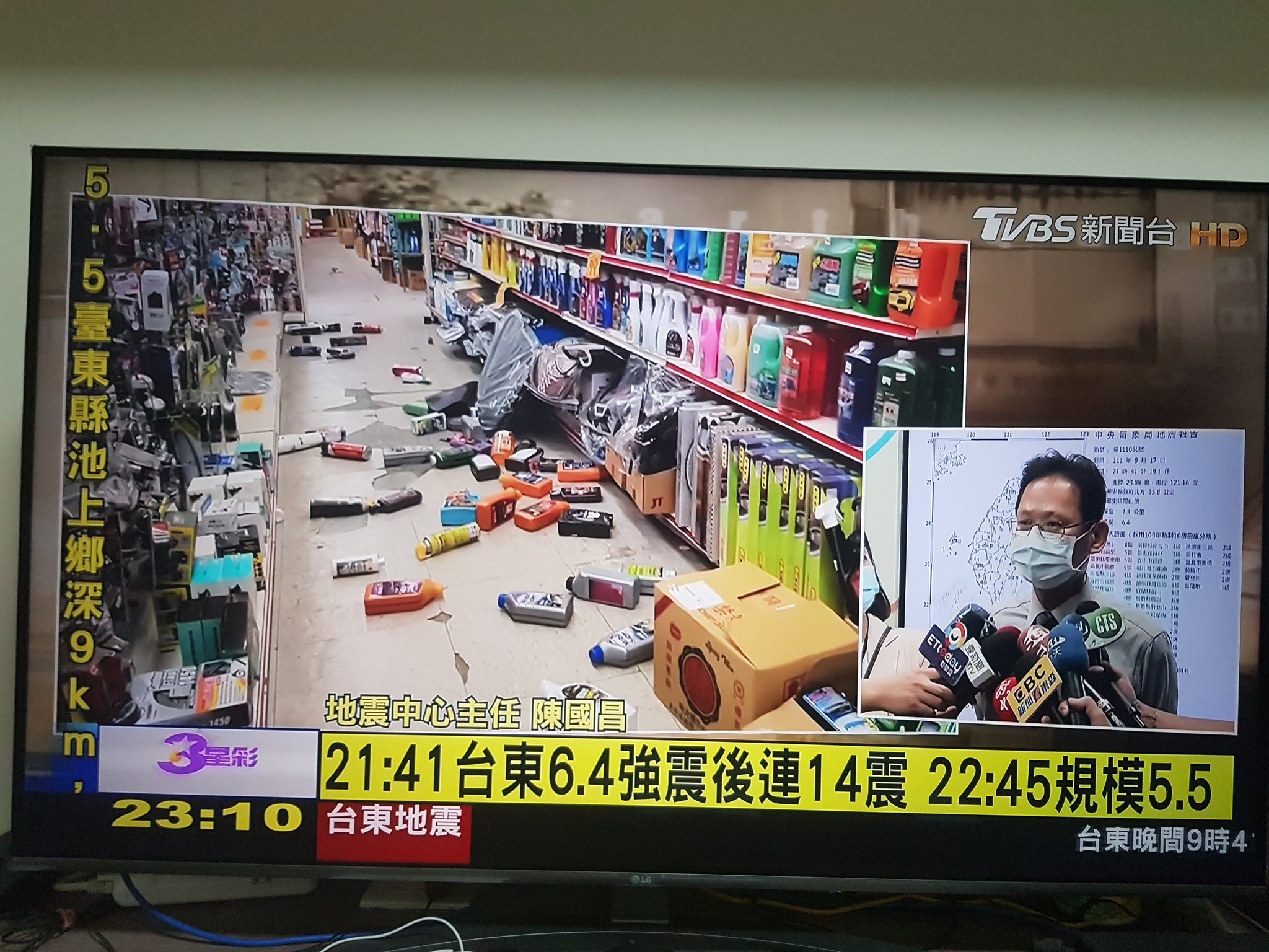 台東県の池上で現地での震度6強が観測されたほか、