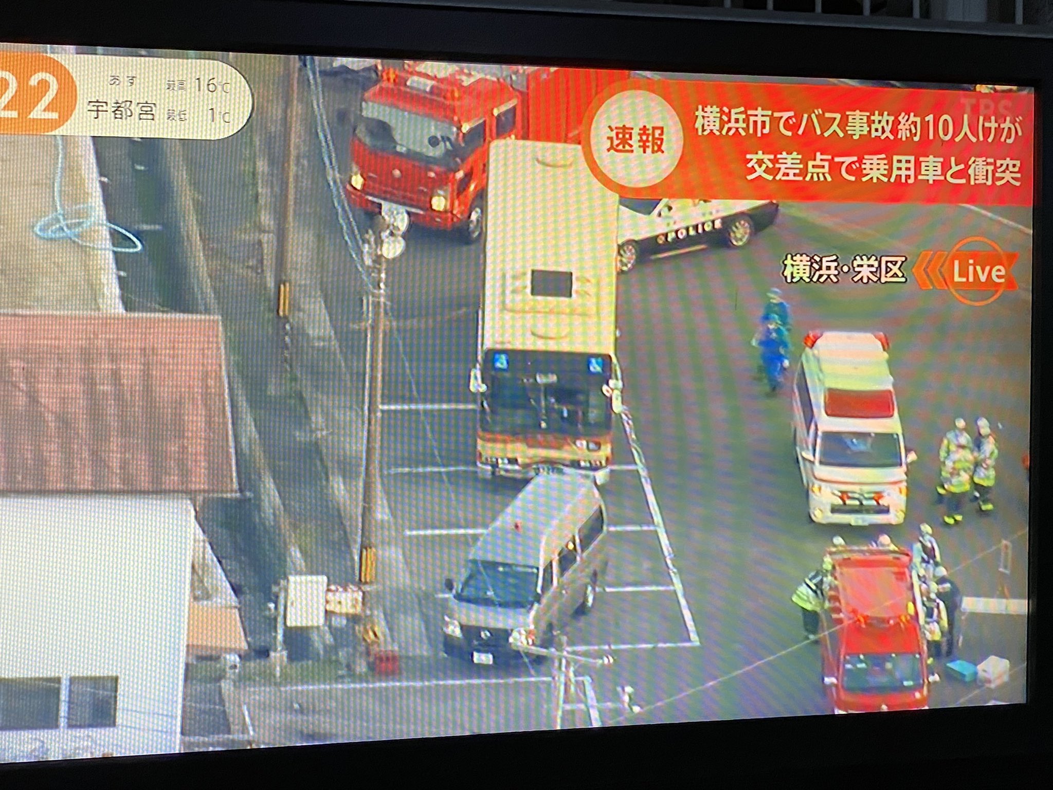 神奈川県横浜市栄区上郷町 環状4号線 神奈中車庫前交差点で路線バスと乗用車の衝突事故「神奈中バス前面が潰れてる、上空をヘリが旋回」車線規制で渋滞 #横浜 3月3日