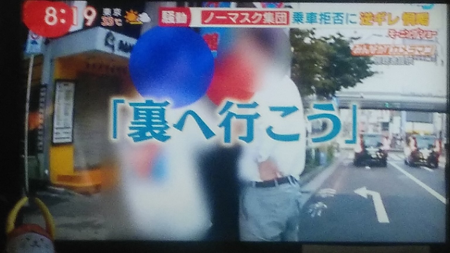 ノーマスク集団 乗車拒否されて逆ギレキック