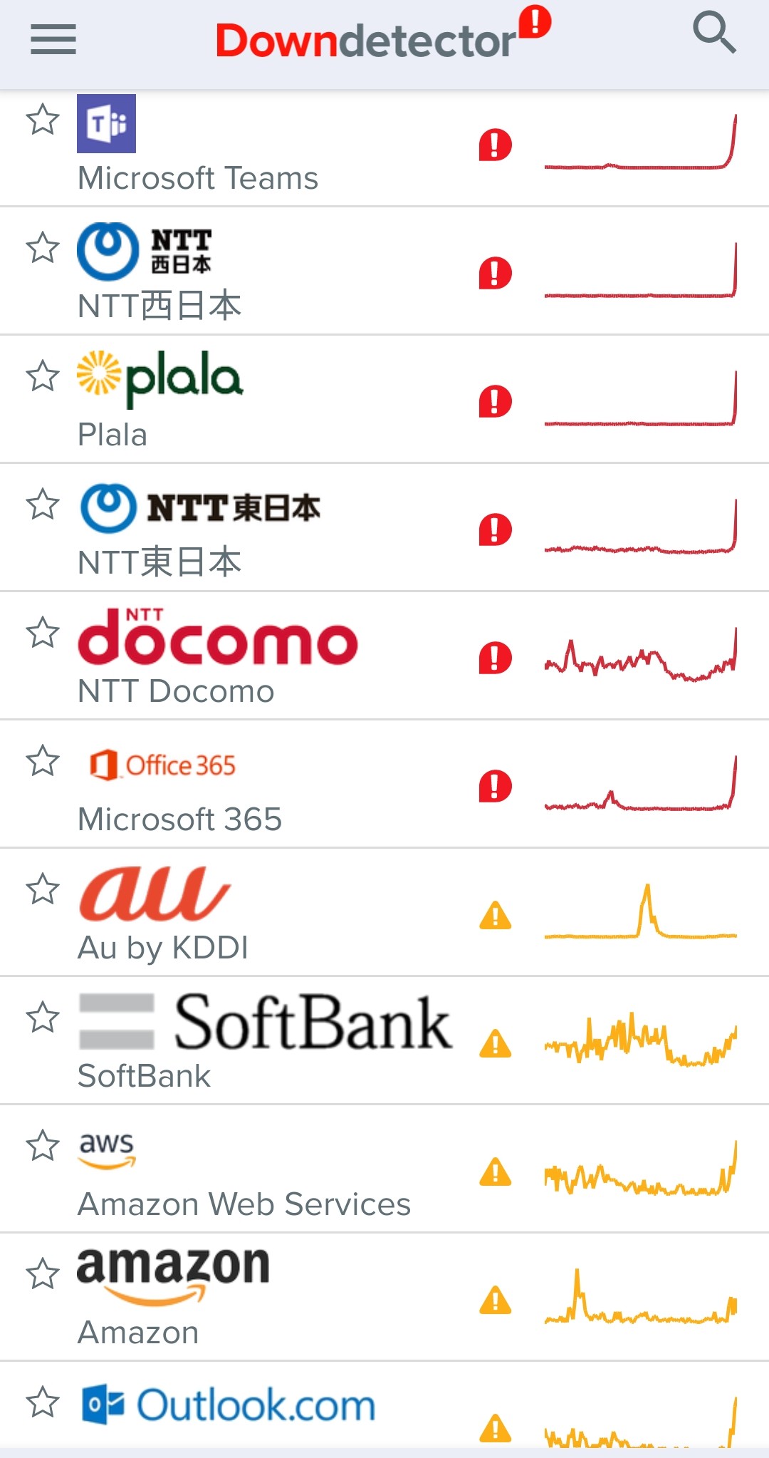 先月7月21日木曜日も障害が発生