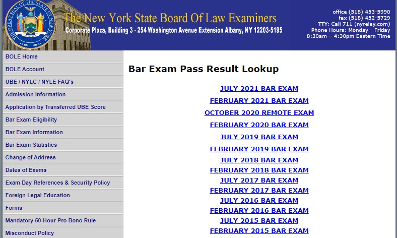 アメリカ・ニューヨーク州の司法試験の結果について、