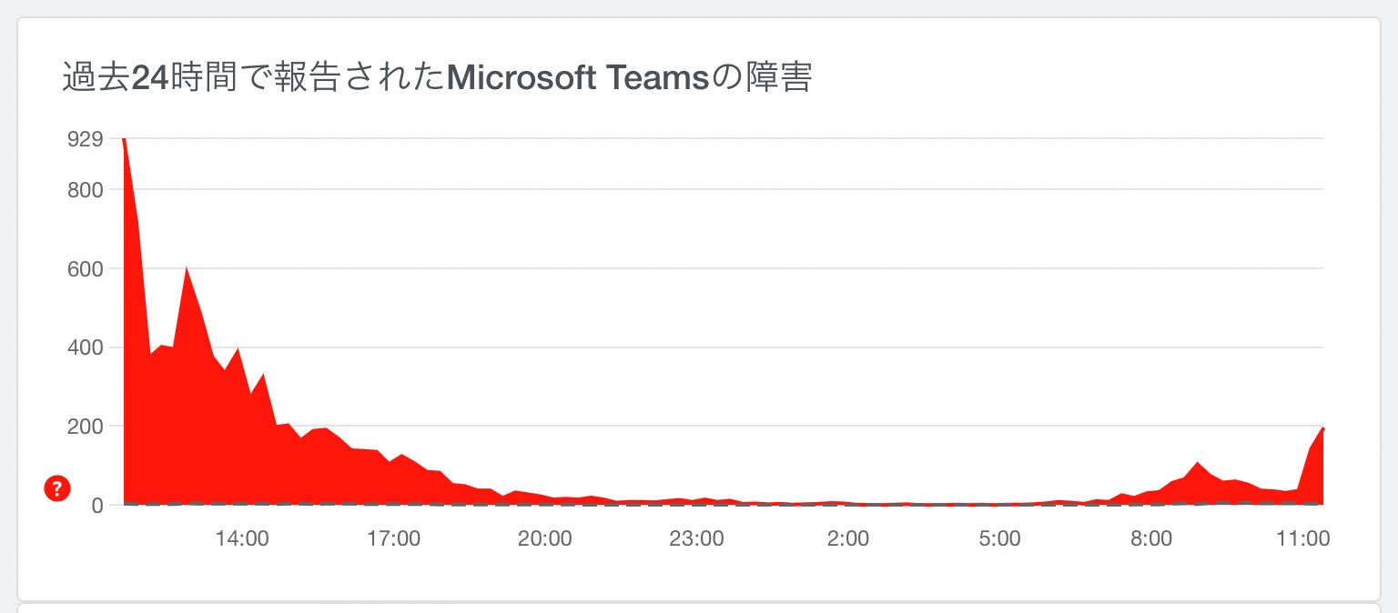 昨日も不調だったTeamsもほぼ同じ時間から障害が増加