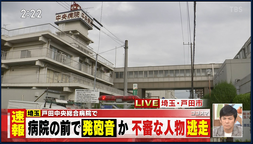 13時10分頃 埼玉県戸田市本町 戸田中央総合病院で発砲事件