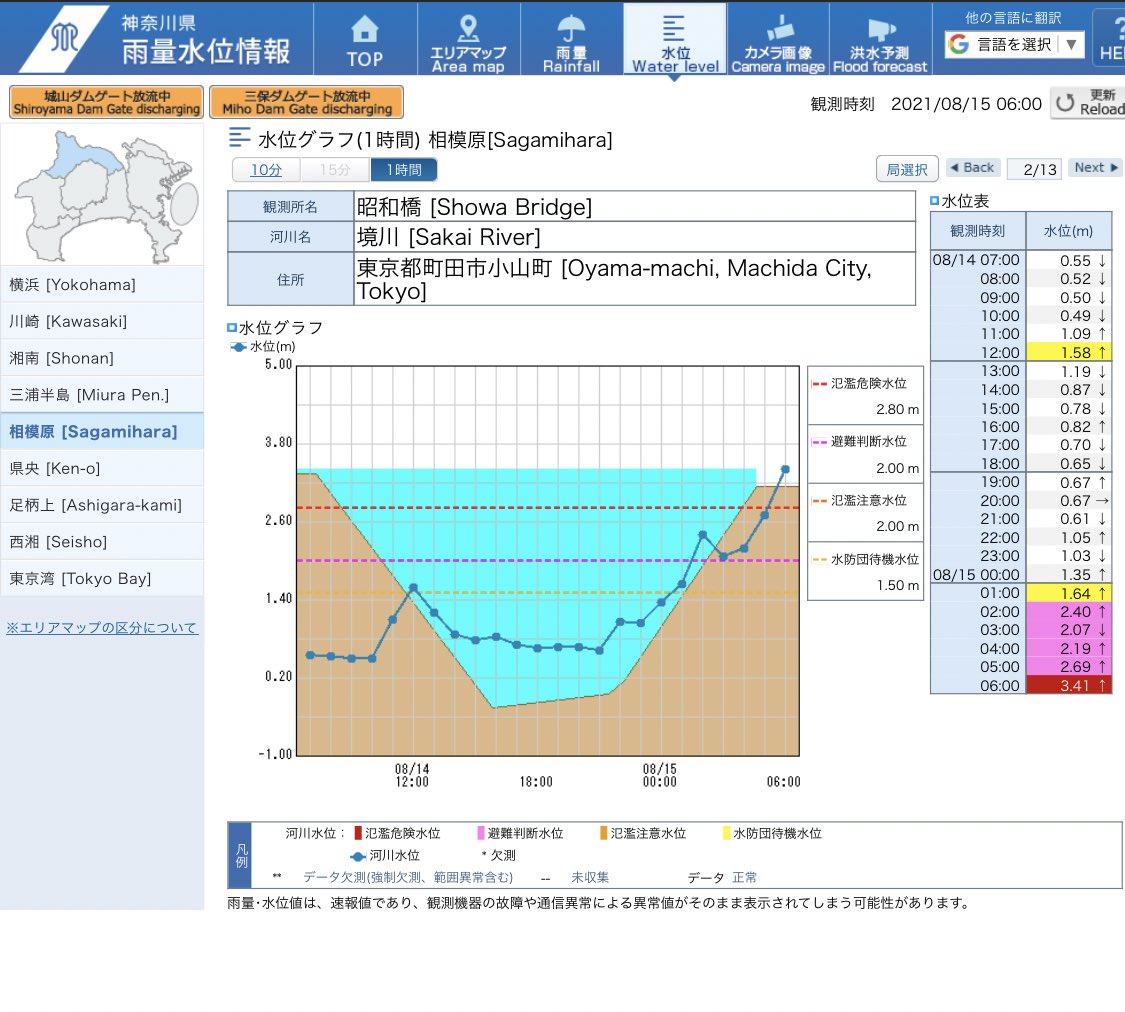 家の近くが境川なので外出て見たら溢れ出す手前でした pic.twitter.com/w426J8CNmq