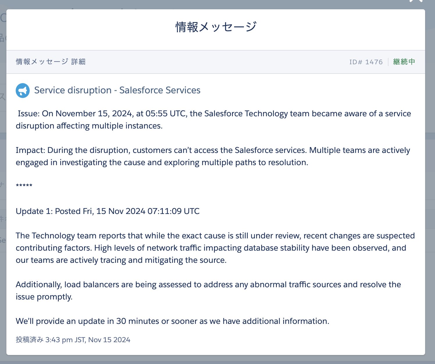 2024年11月15 日 05:55 UTC、Salesforceテクノロジーチームは