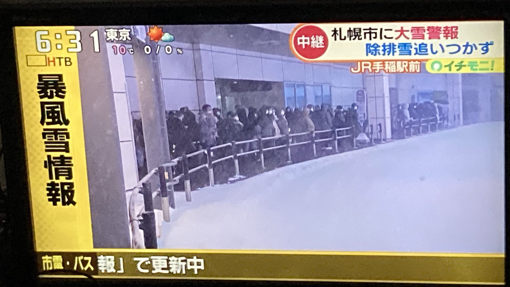 手稲駅 札幌駅行きのバス乗り場は60人待ち、バスも来ない状況