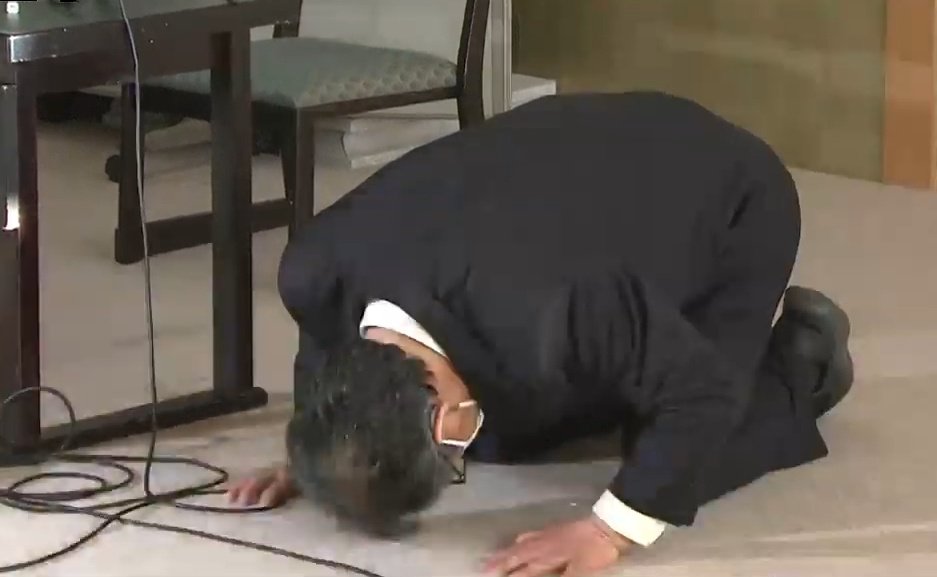 2回目の土下座が終わるまで、泣いたような鼻をすするような感じでしたけど、状況説明になった途端それも無くなりましたね… 原稿丸読みと演技がくさすぎて、ドン引き…