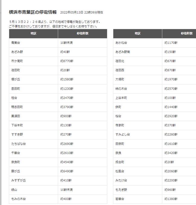 なかなか復旧しない#停電 #横浜市青葉区 #市ヶ尾 pic.twitter.com/TMbJjTjeFl