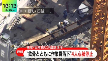 9時20分頃 東京都中央区日本橋の工事現場で鉄骨落下事故