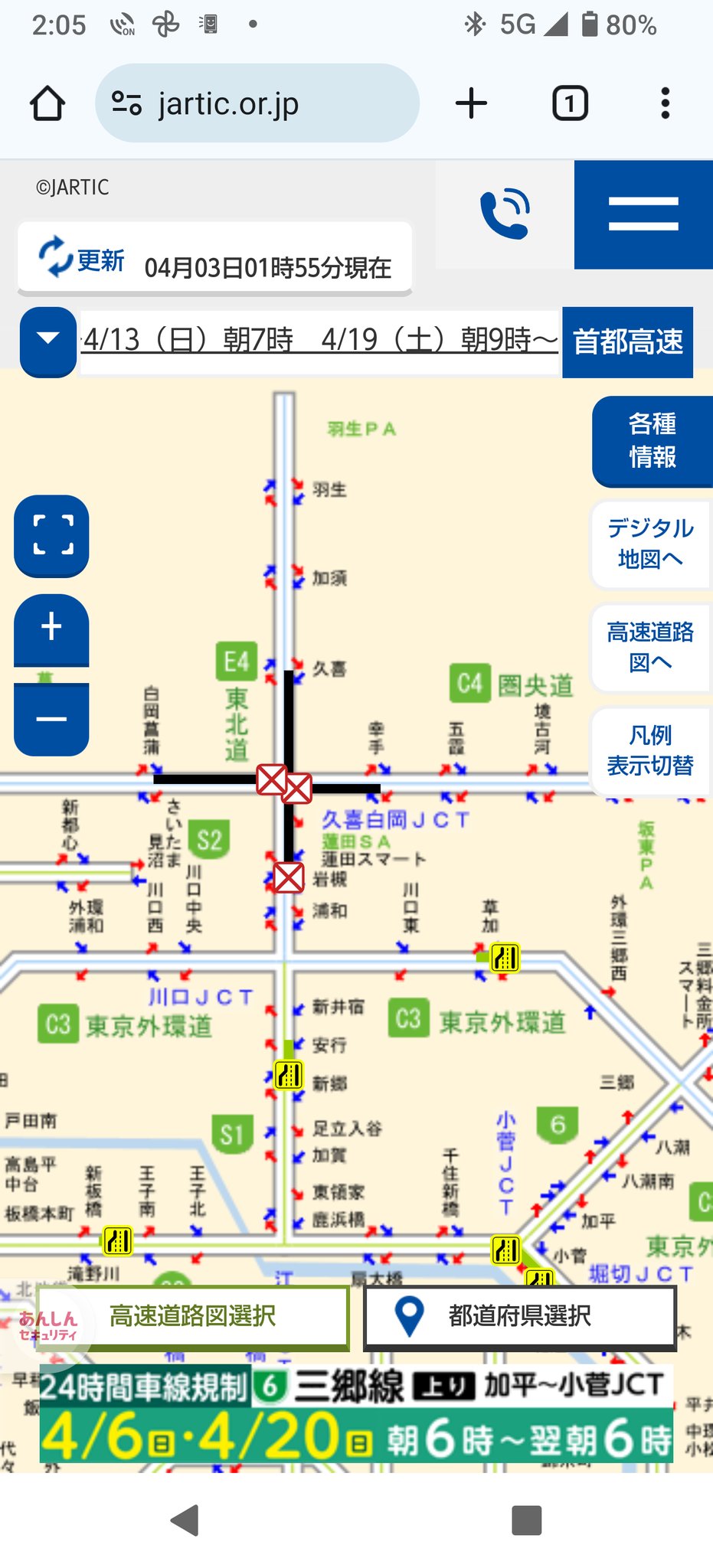 1時50分頃から逆走車がいると通報が相次いでいた東北道