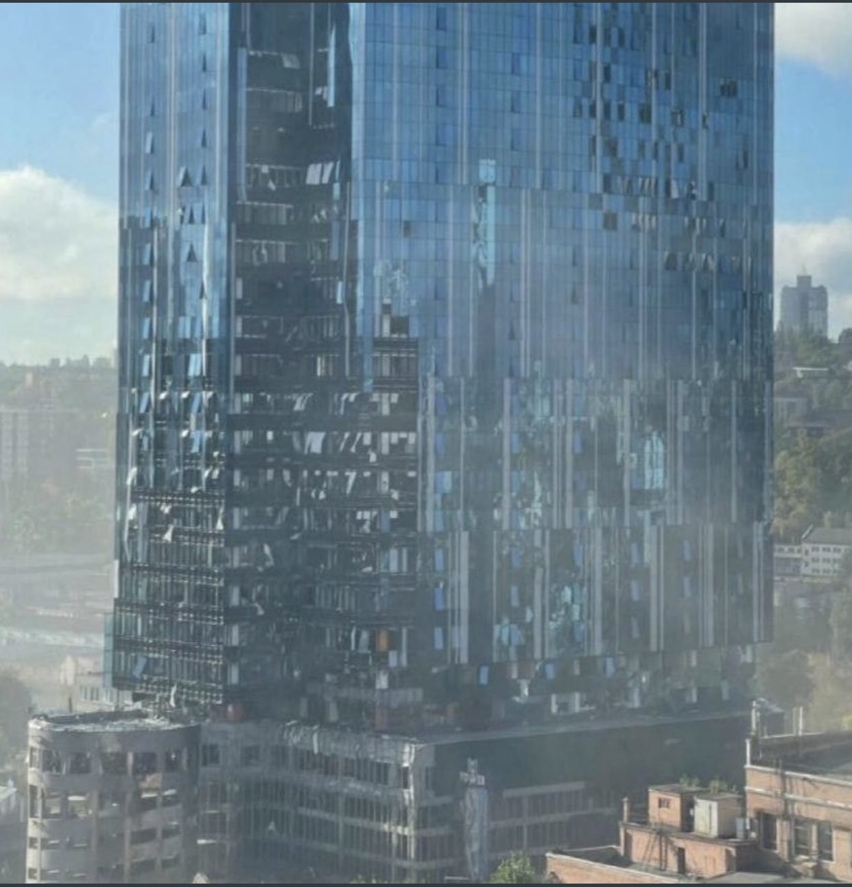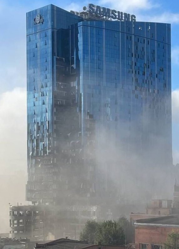 Oбстріляли штаб-квартиру Samsung у Києві. Tower 101: pic.twitter.com/Ea7hwBSewJ