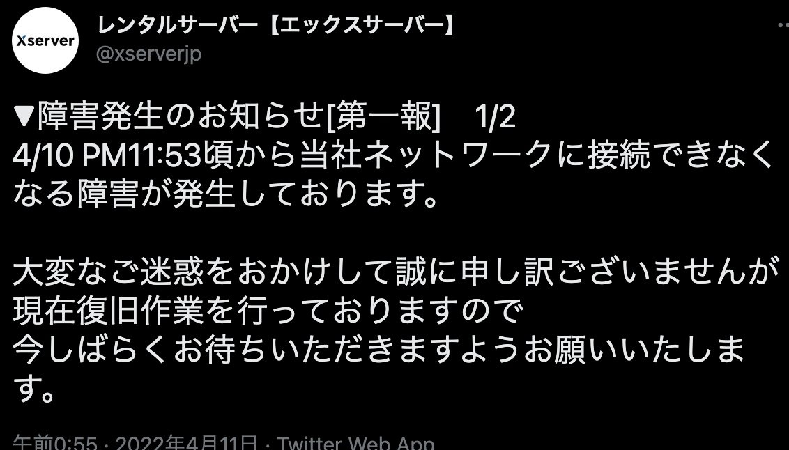 エックスサーバーとスターサーバーで大規模障害