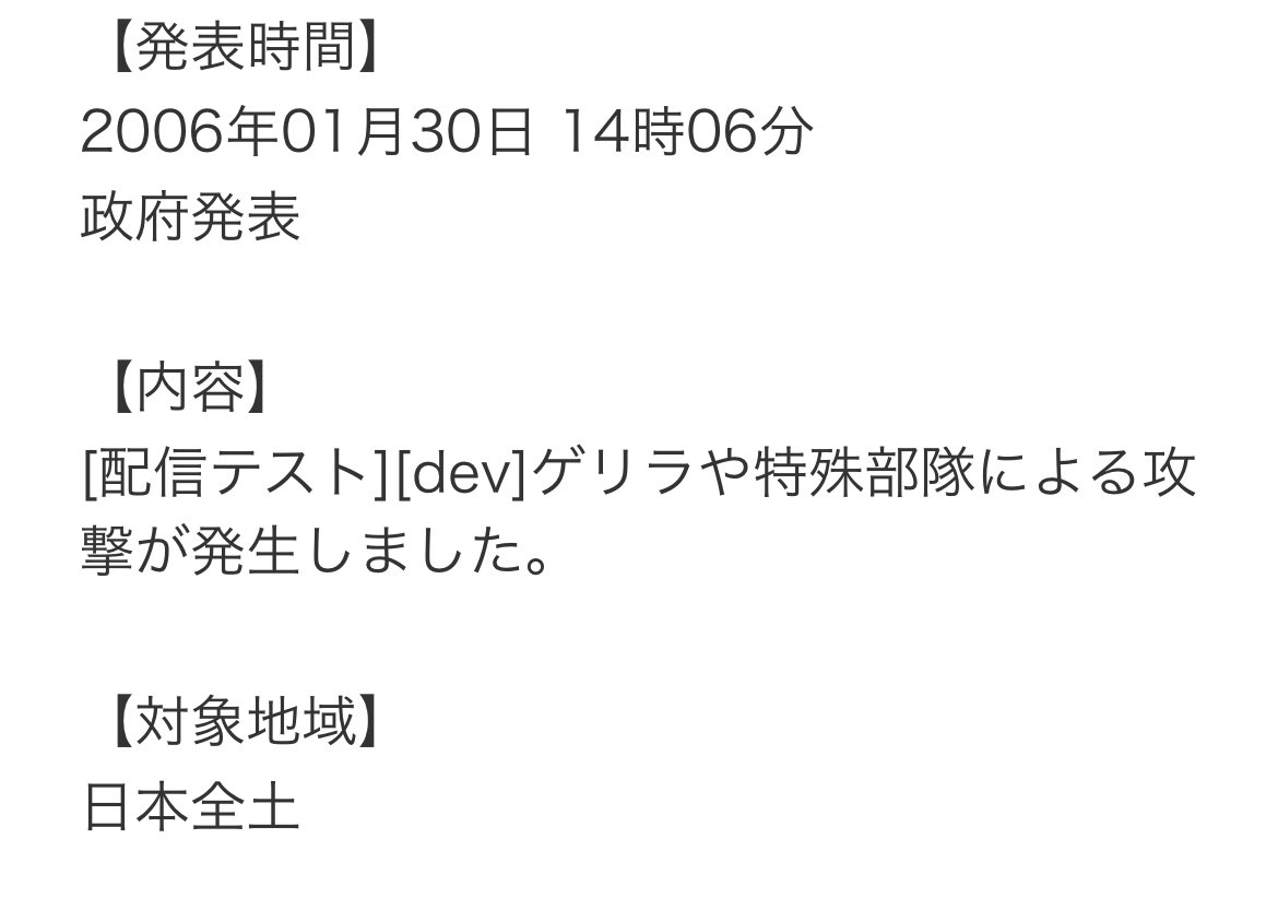 防災速報で ゲリラの攻撃 ってあって、超焦った