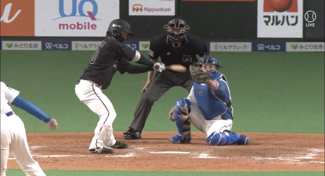 ロッテ福田光輝の打席で捕手が打者を妨げ打撃妨害の判定(福田がアピール)