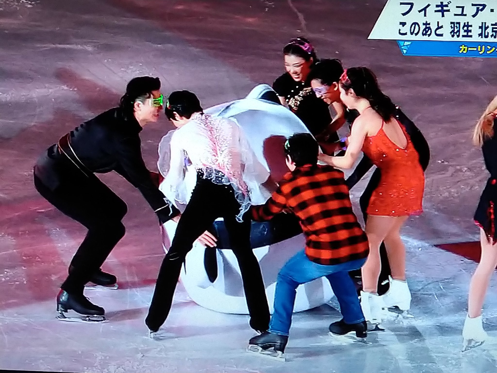 フィギュアスケートのエキシビションフィナーレでビンドゥンドゥン転倒