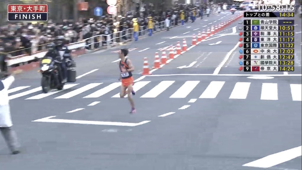 8位を走っていた国学院大の寺田はゴールまで120メートル地点で、