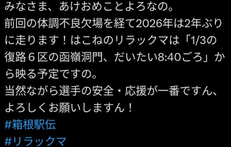 リラックマいたー!#箱根駅伝2026 pic.twitter.com/4eo0mHBSsR