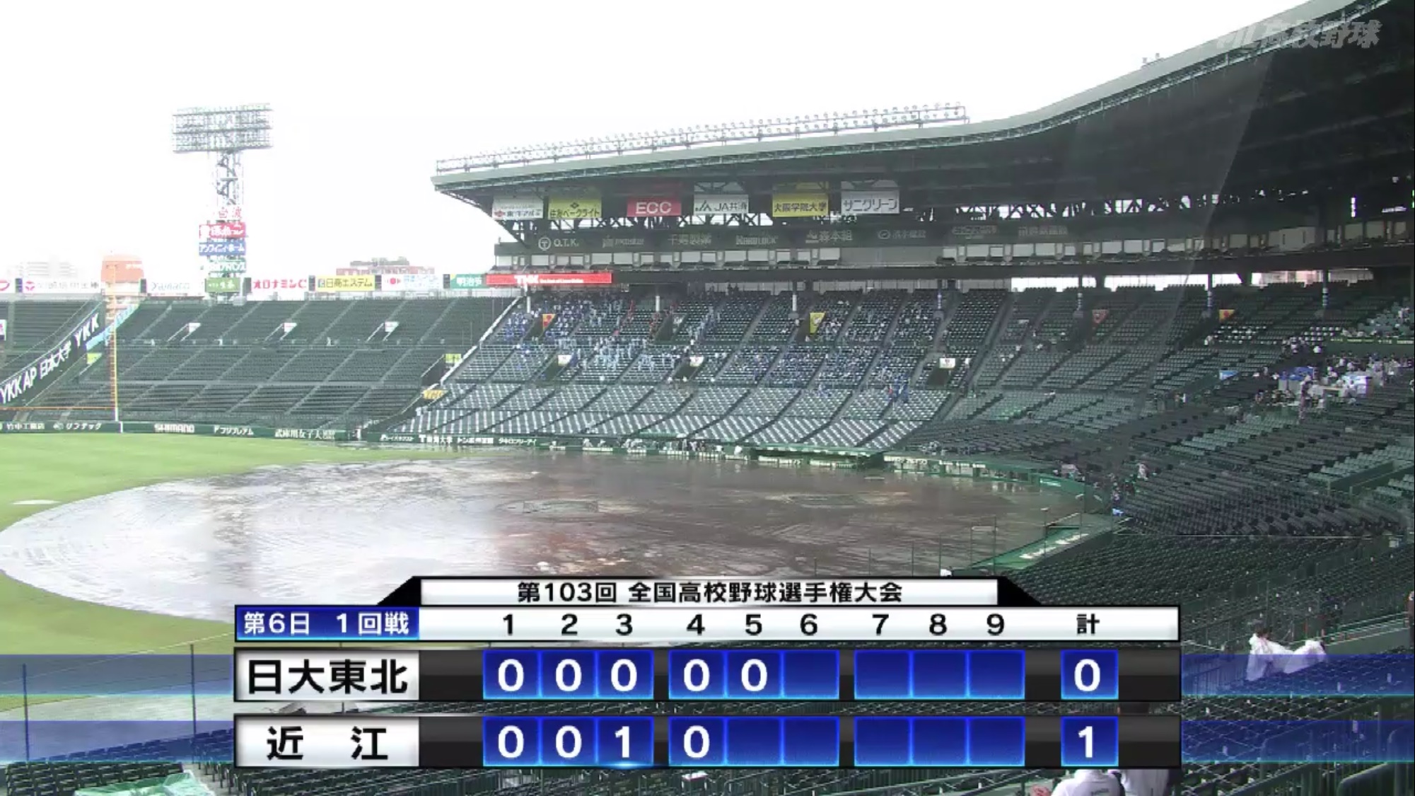 雨の影響で2時間22分の中断時間があった高校野球6日目