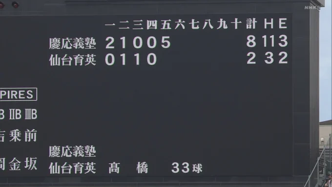 5回表 慶応が大量得点でネット大荒れ