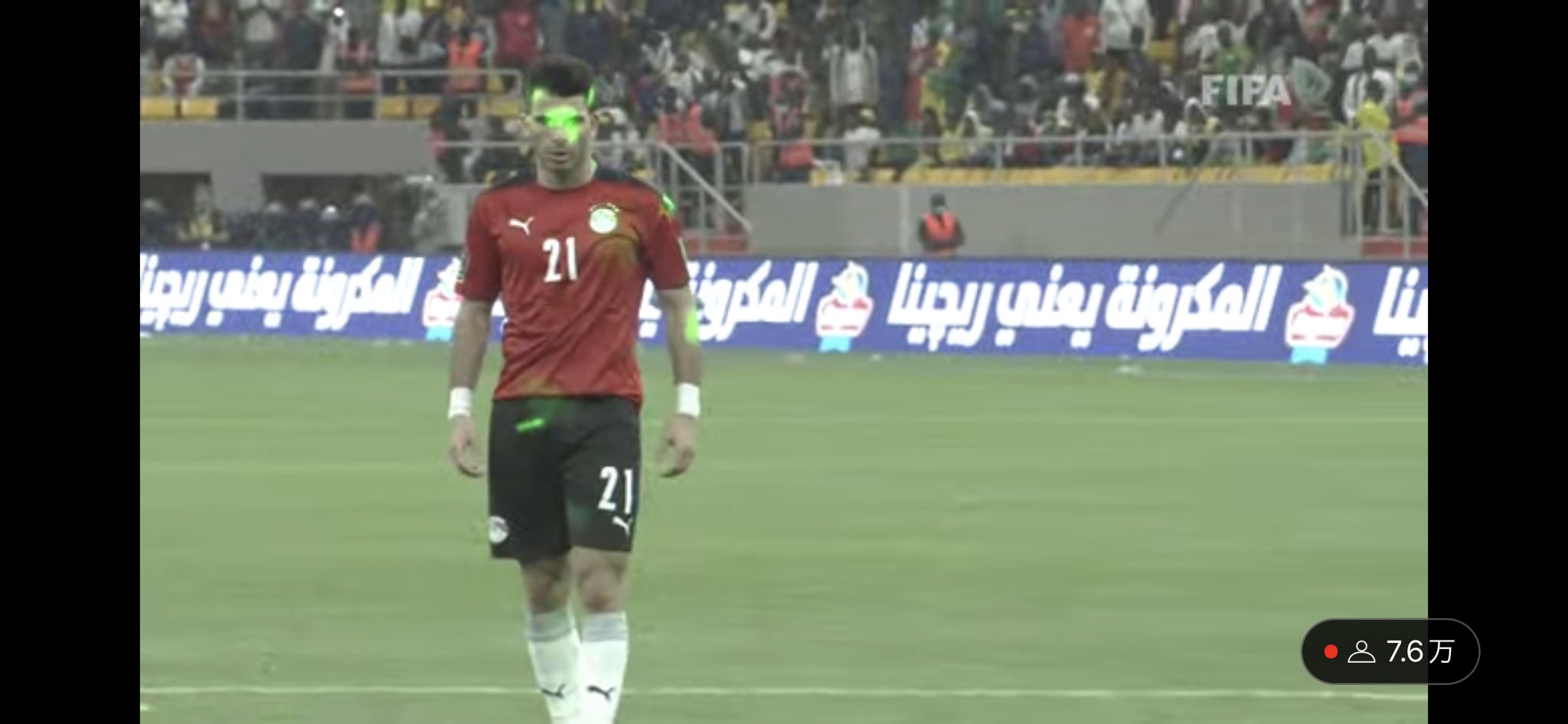 試合中もエジプトの選手たちは“レーザー攻撃”を受けていた。