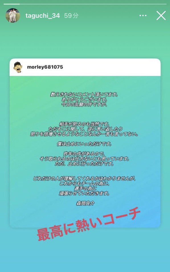 ネットで叩かれている森岡コーチも「熱いコーチ」と説明
