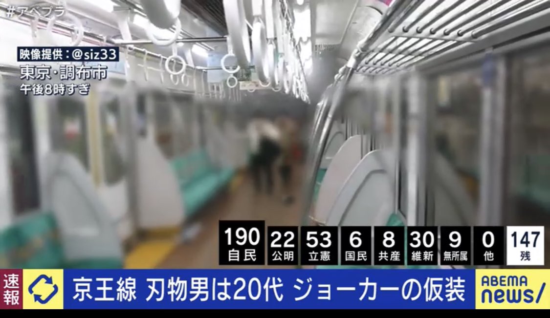 ジョーカー仮装をした20代の刃物男は警察に逮捕、周辺に停車した車内からも乗客はドアコックで避難