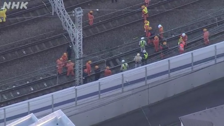 アナウンス「線路内点検を行っています」「線路内の安全を確認しています」