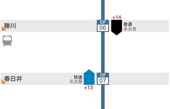 19:13頃、春日井駅で発生した人身事故の影響で、