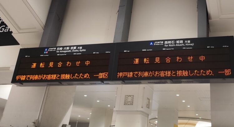JR神戸線、乗ってる車両の下でガラゴロ音がして緊急停車