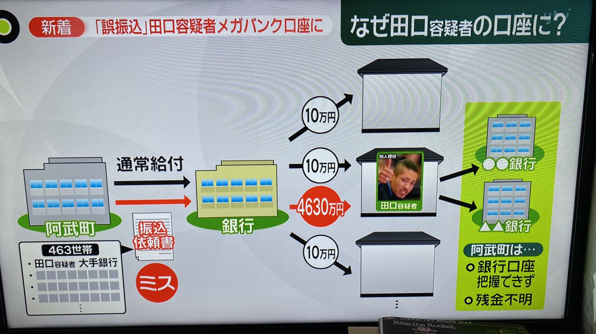 別の口座に振り替えたとして24歳の住民が逮捕された事件。