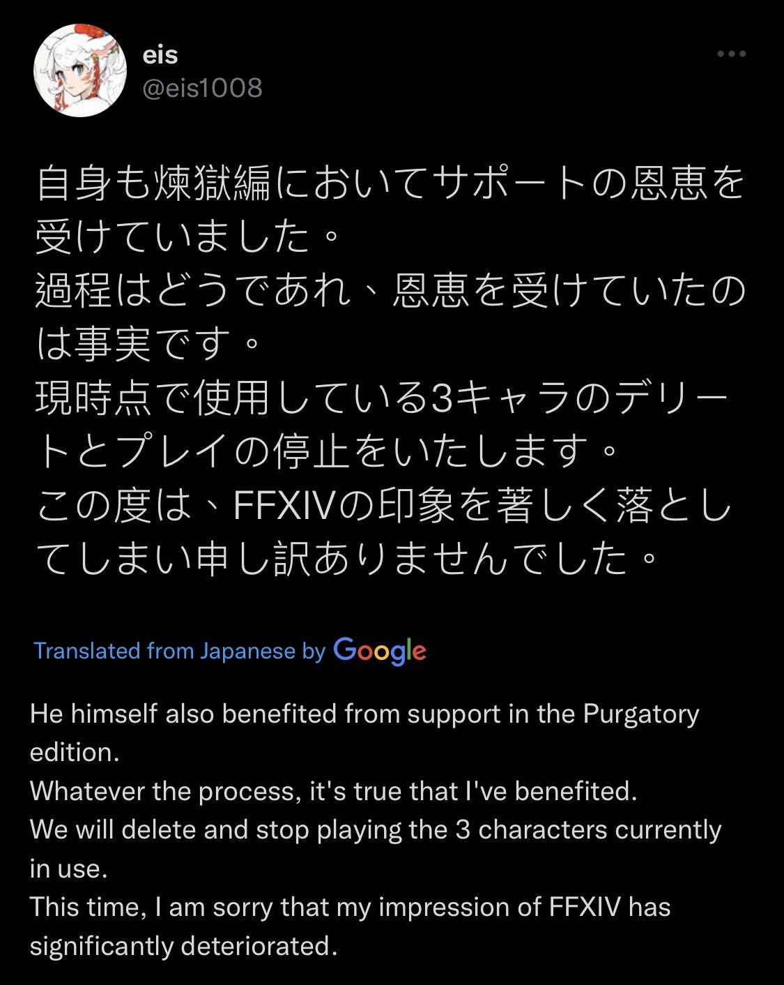 この度は、FFXIVの印象を著しく落としてしまい申し訳ありませんでした。 https://t.co/MsKDoe43pQ
