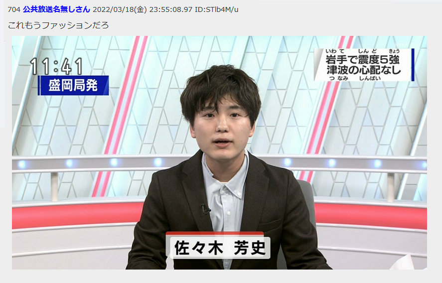 NHK盛岡放送局の佐々木アナ、シャツの襟きれいになった!お疲れ様です