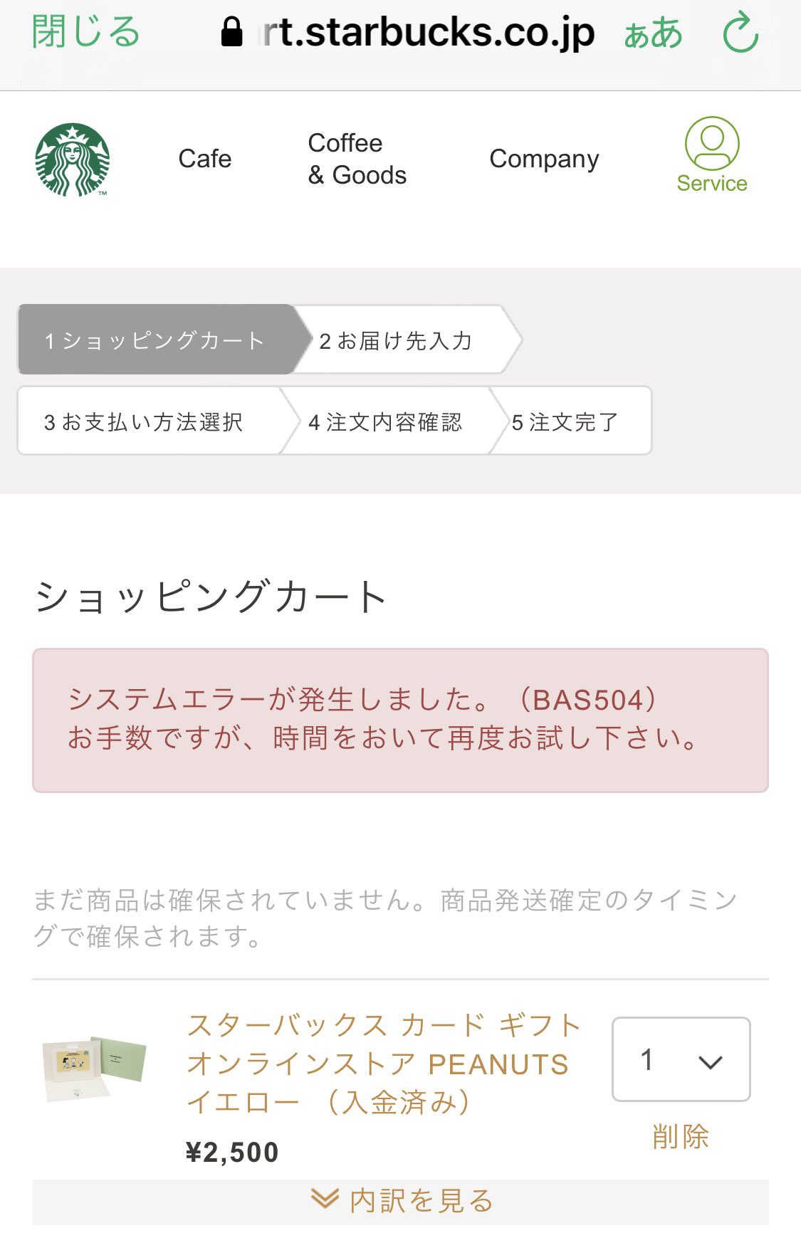 カートが空になるエラー多発